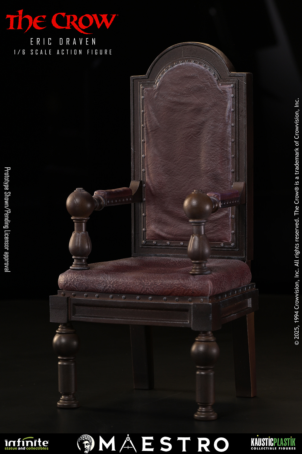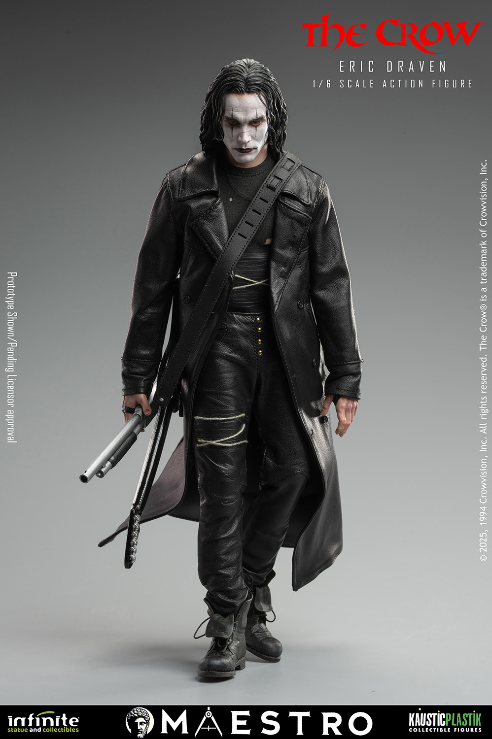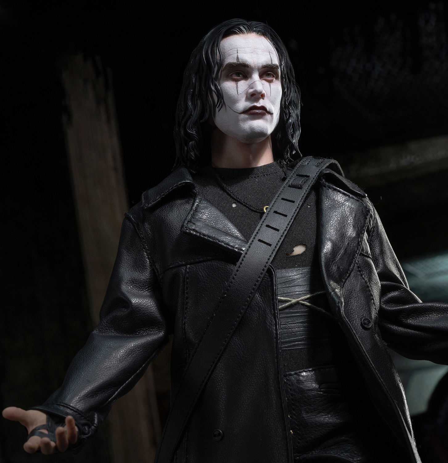 El estreno, Eric Draven – El Cuervo a escala 1:6 , rinde homenaje a uno de los personajes más inolvidables del cine. El equipo artístico trabajó con gran respeto y precisión para capturar no solo el parecido, sino también la intensidad emocional del personaje. La ropa, confeccionada con cuero genuino de alta calidad, presenta texturas auténticas, pliegues y un envejecimiento natural que realzan el realismo de la figura.